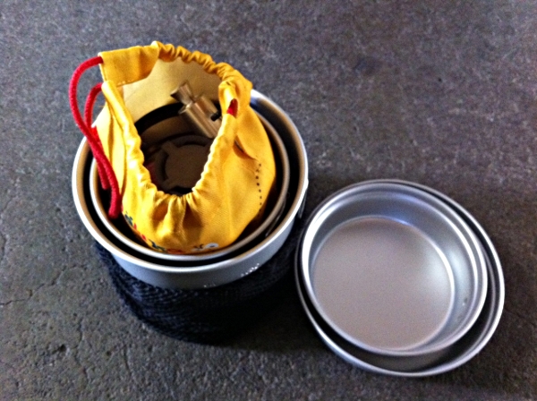 今日はおもてで調理したのだが、少々風があって炎がなかなか安定しない。最近手に入れたコッヘルが、SVEA 123Rと一緒にスタッキング(マトリョーシカのように収納)できるし、それなりに厚みもあって使いやすい。とても気に入っている。