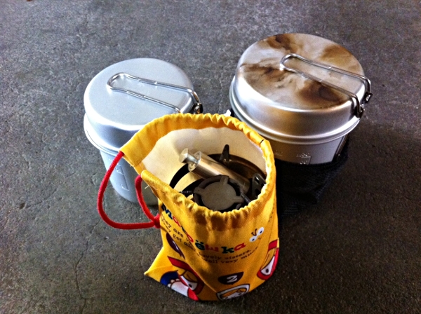 スベアを取り出す。黄色い袋の柄がマトリョーシカなのは別に狙った訳ではない。100均で手頃な袋を探した結果である。
