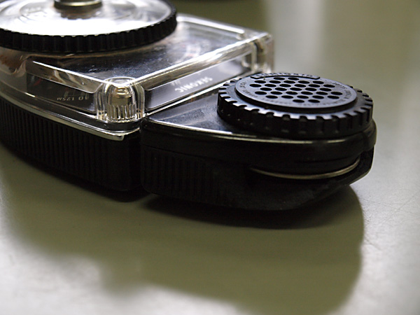 話のついでに、セコニックのこの露出計、いまでは「スタジオデラックスIII」だが、私のこれは型番はL-398。名前も「スタジオデラックス」とだけ書いてある。要するに初代のモデル。壊してしまったことがもったいないと思うが、まだまだ現役でがんばれる。外装はお手製での修復となるので、いろいろと不都合があるかもしれないが、かんべんしてね。