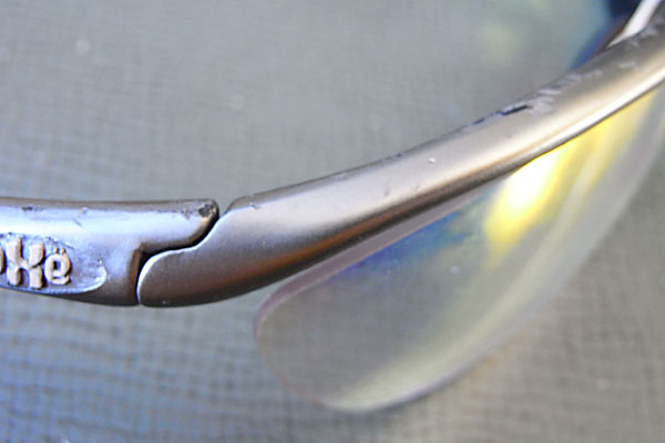 被害にあったのはフレームの傷とノーズパッドの曲がりくらい。レンズは隅っこの方に傷がついたが、視界に影響する場所ではない。
