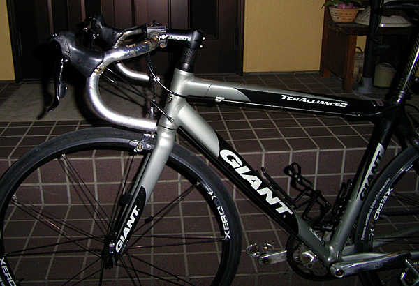 と、その瞬間『RRRRRR、RRRRRRRR....』と、携帯電話がけたたましくなりだした。おお、と、慌てた私、電話に出た瞬間、バーテープを抑えていた手がふと離れた。瞬間、「ビュルル.....」とゆるみほどけるバーテープ...。あ〜あ。