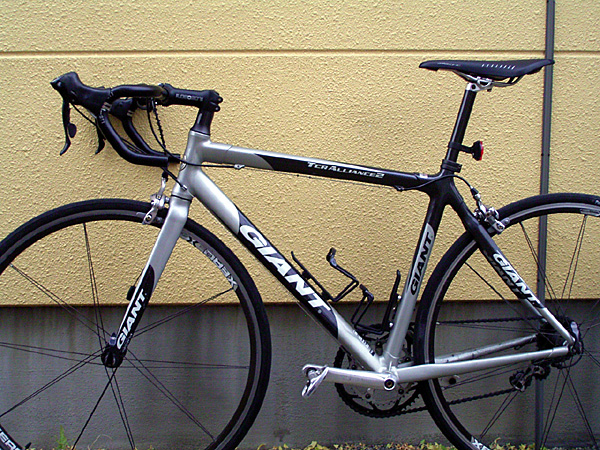 さて、早速試乗してみた。...あれ?....妙な違和感。すぐに原因は判明した。これまで、私はブレーキブラケットの取り付け角度がアップライト(上向き)のセッティングだったのだが、今回はそうはいかない。で、前に滑って行くような感覚があったのだ。